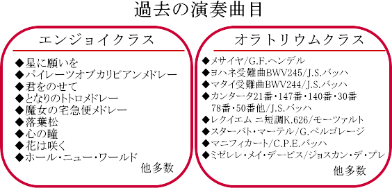 BIWAKOオラトリウム合唱団は創設から8年、クラシック作品のみを取り上げてきて右記のように公演を積み重ねてきましたが、これらすべてはあなにも歌えるものばかりです。